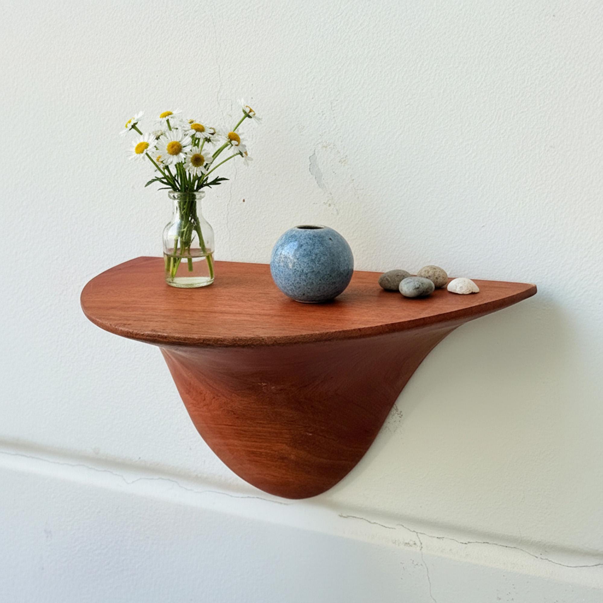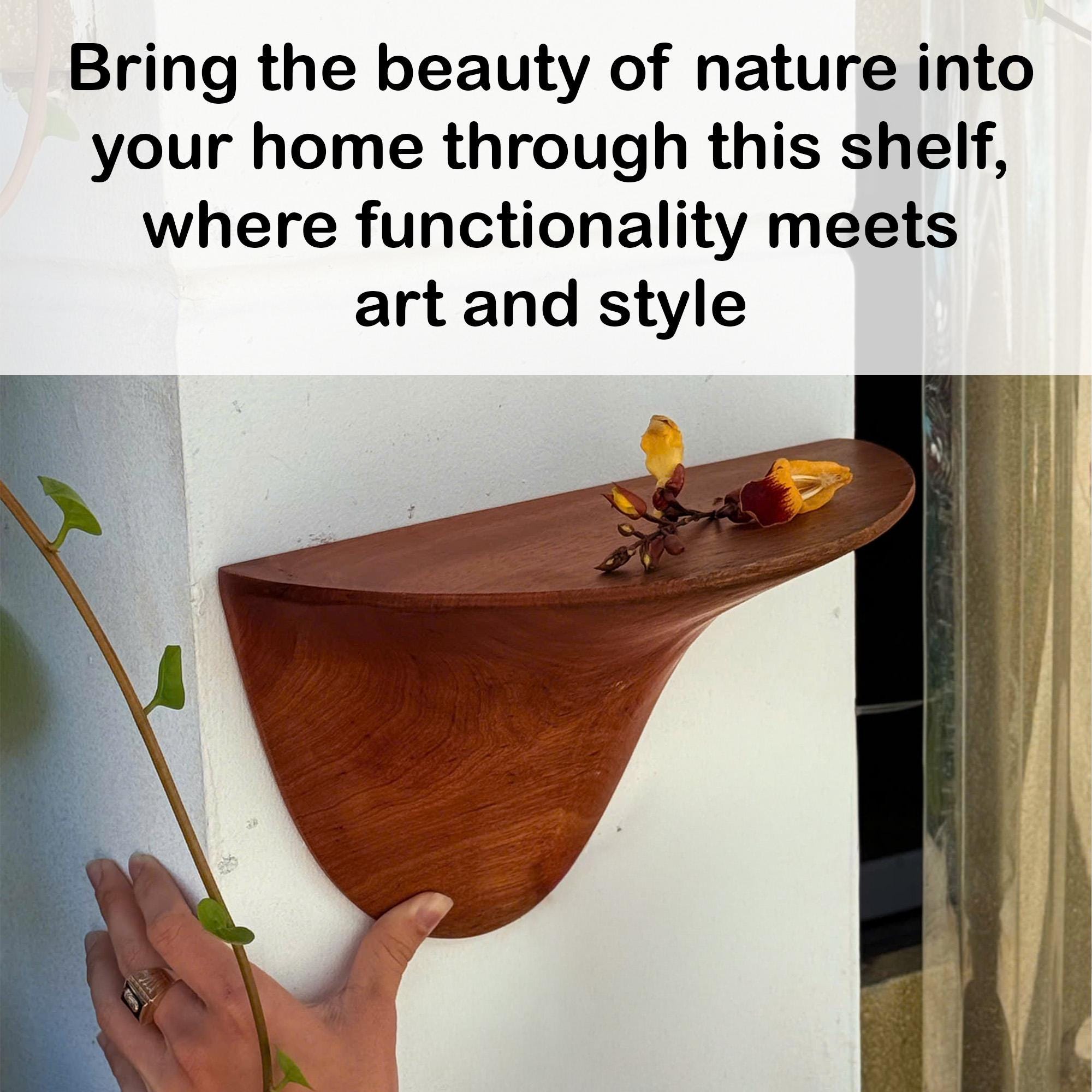 Bring half circle shelf the warmth of nature into your living space with this handcrafted solid wood wall shelf, carefully shaped from a single piece of natural wood. Inspired by organic forms found in nature, this sculptural shelf features soft curves, flowing edges that makes each piece truly one of a kind.