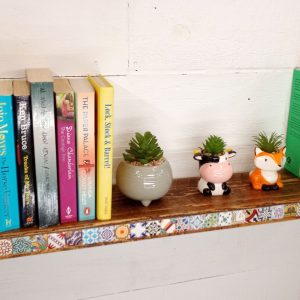 This handcrafted wall shelf blends artisan tilework with sustainable materials, creating a stunning focal point for any room.